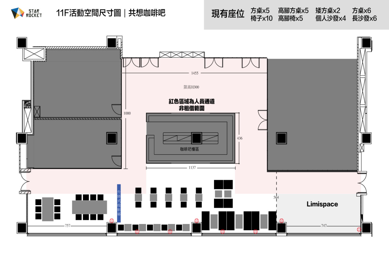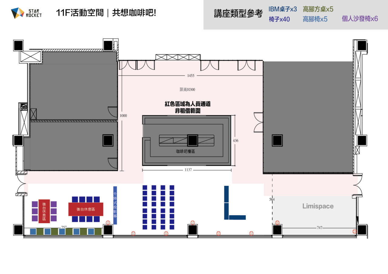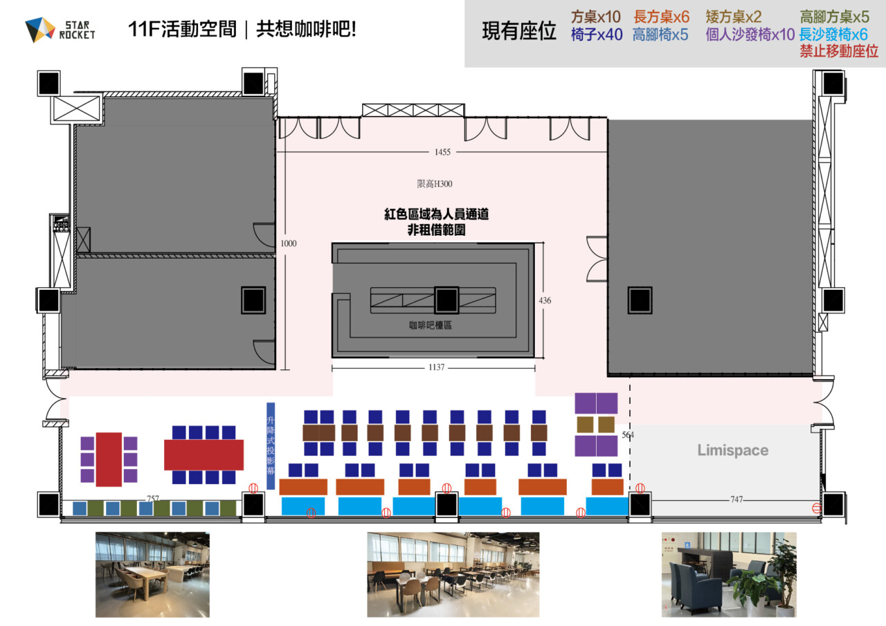 使用者須自行佈置與復原場地。搬動桌椅請勿拖移。