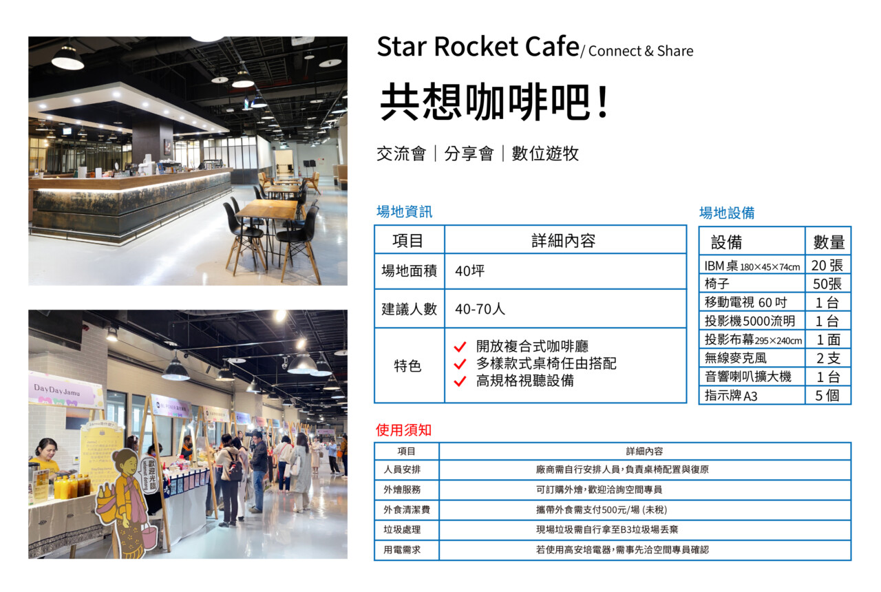 費用含基本設備(投影、音響、桌椅、立牌、麥克風、延長線)。