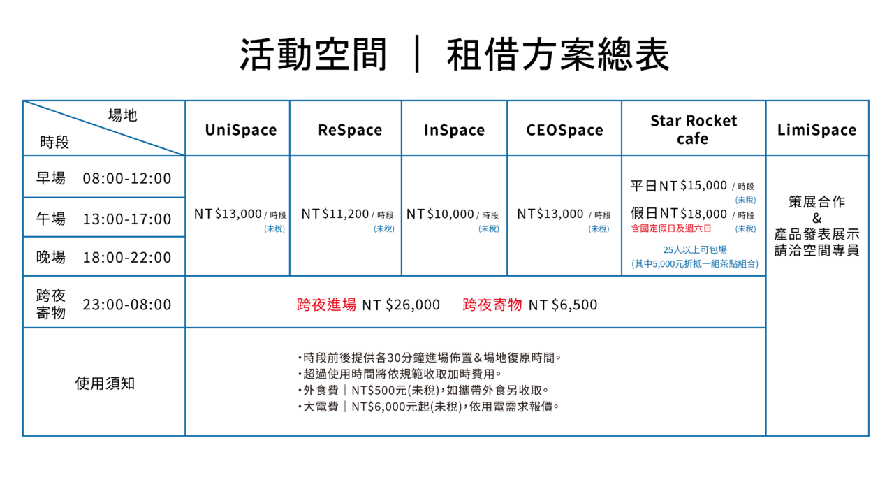 💬 可依活動時間與人數客製,請洽空間專員詢問。