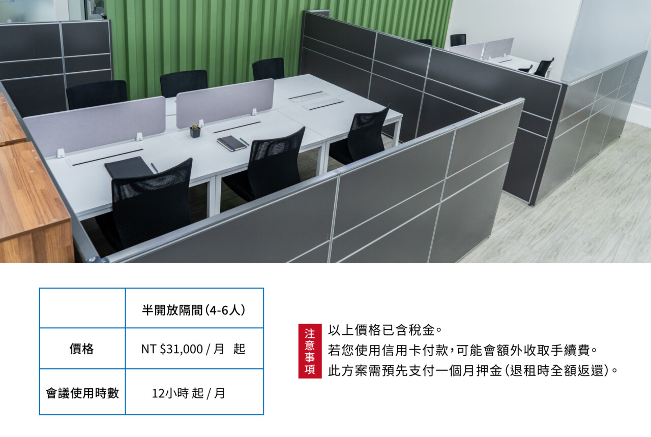 | 保證金(個人固定座) | 等同 1 期租金 |